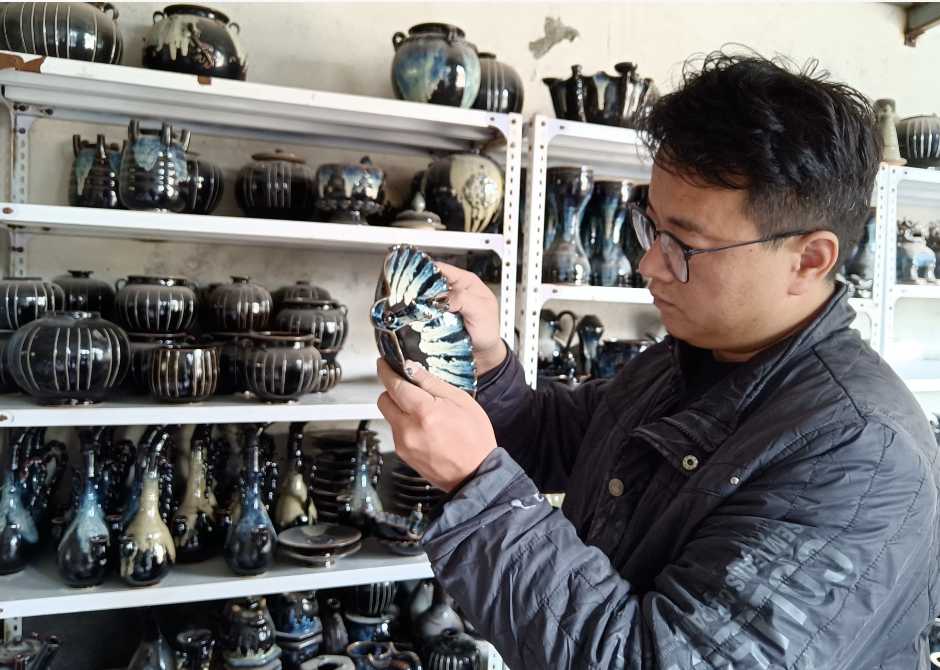 “每一件花瓷,都是笔下的诗,瓷为纸、釉为墨,要写出东方的雅致与神秘。”这是河南禹州市神垕镇39岁手制仿古花瓷匠人王英豪的创作初心。 出身钧瓷世家的他,凭借对陶瓷艺术的热爱与坚守,独辟蹊径烧制鲁山花瓷,其作品一经面世便销往全国,深受藏家追捧。 王英豪自幼浸润在陶瓷文化中,家中传承的黑瓷釉方,让他早早与制瓷结下缘分,最初以烧制黑瓷起步。但他发现,神垕镇钧瓷烧制者众多、竞争激烈,便决心寻找差异化道路,将目光投向了有着深厚历史底蕴的鲁山花瓷。 为掌握鲁山花瓷的烧制技艺,王英豪历经无数次失败,但他从不气馁。他反复调试配方和釉料,不断摸索烧制经验,不知烧坏多少窑产品,终于攻克技术难关。他采用洒斑、点斑、立粉堆线等独特的施釉技法,斑釉不含钴化合物,蓝色完全依赖自然窑变。他所烧制的鲁山花瓷,完美呈现了这一瓷种的核心魅力:不仅拥有黑地乳白蓝斑三色窑变,以漆黑黑釉为底,饰以乳白或蓝白色斑块,经高温窑变形成云霞缥缈、水墨浑融的视觉效果,色彩自然且变化莫测,浑然天成。同时,釉层肥厚质感坚实,釉面呈现釉泪、釉痕等凹凸现象,胎体厚重饱满,造型丰润浑实。 作为唐代北方陶瓷艺术的最高代表,鲁山花瓷素有“钧瓷之源”和“唐钧”的美誉,而王英豪的纯手制作品,正让这份千年陶瓷文化在当代焕发出新的生机。 |
