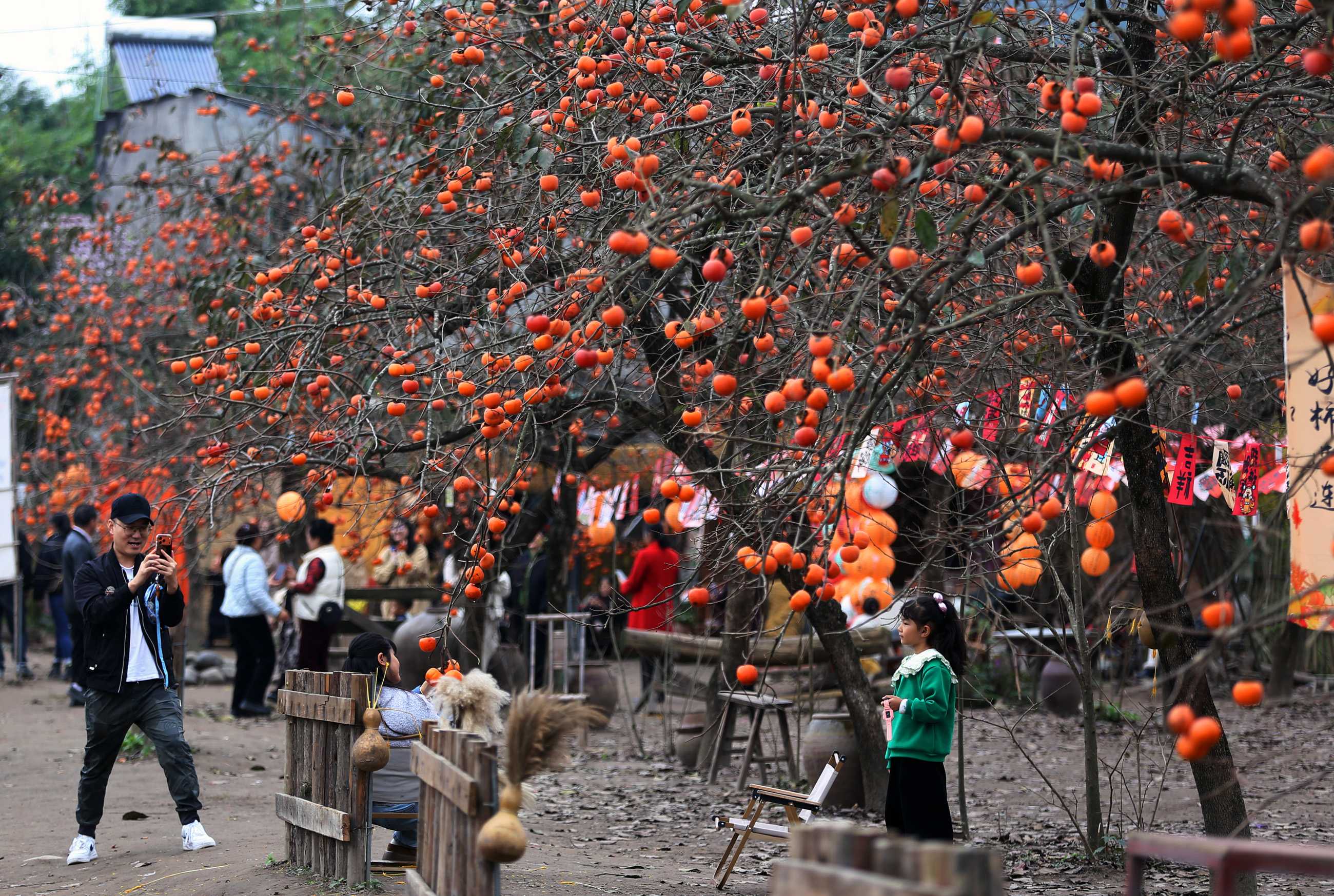 11月17日,四川省乐山市五通桥区汤家坝村柿子园,柿子树上挂满红彤彤的柿子,成了小山村一道亮丽的风景线,吸引游客前来游玩,带动了当地乡村旅游发展。 眼下,在四川省乐山市五通桥区汤家坝村田野间,如霞似火的柿子挂满枝头,红润而丰盈,演绎着别样的季节风情。漫步于田间小道,满树的柿子如同盏盏小红灯笼,高高挂起,照亮了整个冬天。站在柿子树下,抬头仰望,只见一个个红彤彤的柿子密密麻麻地挂满枝头,它们或独自傲立,或三五成群,宛如一幅精美的画卷,让人不禁驻足欣赏。阳光透过稀疏的树叶,洒在柿子上,更添了几分温暖与祥和。 图为游客在四川省乐山市五通桥区汤家坝村柿子园游玩。 李华时 摄 |