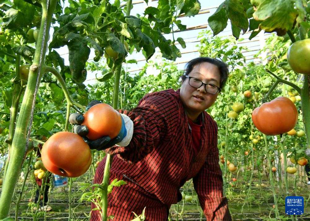 近年来,河北省肃宁县持续推进农业产业结构调整,引导农民采取“合作社+基地+农户”的模式,因地制宜发展特色设施农业,种植高品质蔬菜,供应京津等市场,促进农民增收,助力乡村振兴。图为12月29日,肃宁县万里镇一家蔬菜种植合作社的社员在大棚内采摘西红柿。 杨世尧 摄