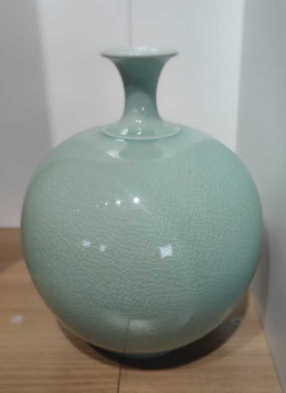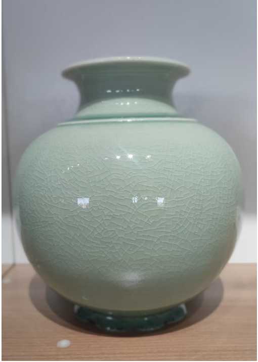 让千年窑火重燃的,是河南省工艺美术大师郭全辉。一次偶然的收藏邂逅,让他与真昌古瓷结下不解之缘。为复原这一失传技艺,他十余年间遍访博物馆、踏遍名窑产地、求教行业名师,在吃透传统工艺精髓的基础上,攻克原料配比、窑火控制等多个难关。如今,他复原的真昌黑瓷以深邃底釉衬映灵动蓝斑、月白斑,纹理自然流淌;青瓷则融入方城高纯石英砂、玛瑙等珍贵矿物质,釉色温润剔透如"雨过天晴云破处",完美复刻古瓷神韵的同时,更赋予作品当代审美张力。