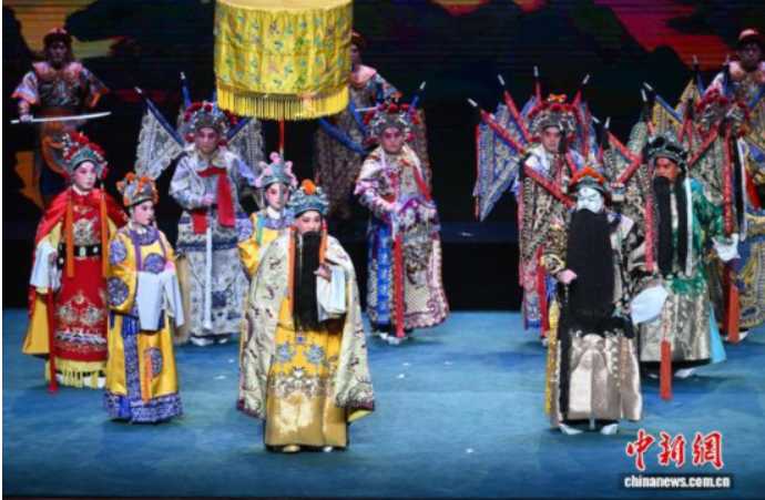 蒲剧作为梆子声腔剧种的鼻祖之一,流行于山西、河南、陕西等地,唱腔高亢激越,表演以帽翅、翎子等特技著称。此次上演的《金沙滩》聚焦杨家将故事中最为悲壮的章节,演绎了杨继业携八子血战金沙滩、舍身赴国难的英雄传奇,集中展现了该剧种慷慨豪放的艺术特色。