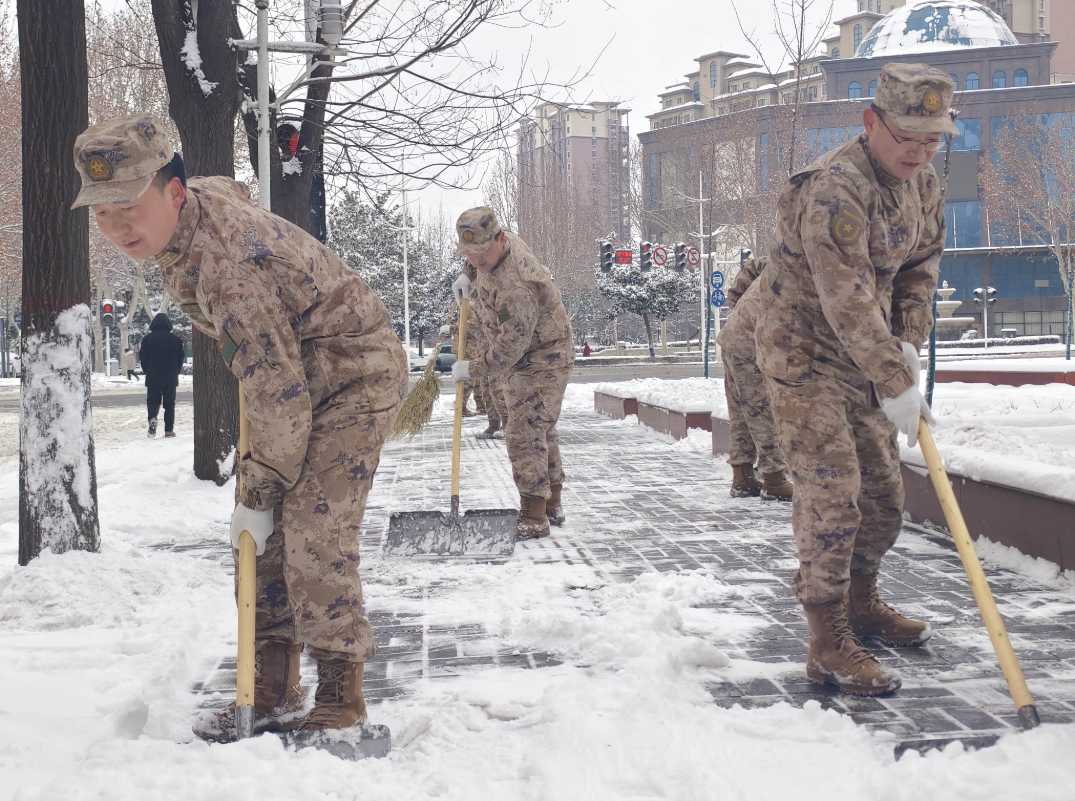 寒锋裹雪踏夜至,破冰除雪见初心。强降雪后,道路街巷冰封雪凝,凝结成冬日里的“特殊考题”。郑州市上街区人武部全体人员身着作训服,手持铁锹镐头率先走向积雪最厚的路段,以“向我看齐”的鲜明姿态,打响清雪保通攻坚战,用实干担当在雪地里写下忠诚答卷。 “雪情就是命令,畅通就是责任!”大家挥锹铲起积雪,寒风吹红了脸颊,却吹不灭干事热情。部领导一边清理路面冰层,一边叮嘱身旁官兵:“既要保证清雪效率,更要注意自身安全,咱们人民子弟兵多干一点,群众就安全一分。”全体人员划分责任区域、明确任务分工,铲雪、破冰、清运各项工作有条不紊推进。 营区主干道上,铁锹与冰层碰撞发出清脆声响,溅起的雪沫落在肩头,瞬间化作晶莹水珠。“站在冲锋的第一线,浑身有使不完的劲!”文职人员王帆看着身旁干劲十足的战友,手中的铁锹挥舞得更加有力,积雪在大家齐心协力下迅速向道路两侧推移。 从机关院落到营区大门,从主干道路到街角巷尾,处处可见官兵们忙碌的身影。在结冰严重的陡坡路段,自觉聚在一起用铁锹凿冰破冰,为后续清雪队伍开辟通路;在幼儿园门前和居民区门口,仔细清理出口通道的积雪,确保居民出行不受冰雪影响。官兵们互相配合、默契协作,有的用铁锹铲雪,有的用扫帚清扫,形成了一道“军徽映白雪”的动人风景线。 “党员带头干,官兵跟着上!”经过数小时奋战,营区主干道和周边道路的积雪全部清理完毕,一条条畅通无阻的道路延伸开来,一个个整洁有序的场所恢复原貌,展现出官兵一致、上下同心的优良作风和人民军队永葆战斗力的光荣形象。雪后的城市阳光普照,清扫干净的路面倒映着军徽的光芒,更映照出人民军队“上下同欲、其利断金”的优良传统。 雪落无声,担当有形。此次清雪行动不仅清除了冰雪障碍,更凝聚了军心士气。大家纷纷表示,要把清雪过程中展现出的实干精神、协作意识,转化为练兵备战的强大动力,以更加昂扬的斗志、更加务实的作风,投身强军兴军伟大实践,在新时代新征程上续写新的辉煌篇章。(张微明 王帆) |
