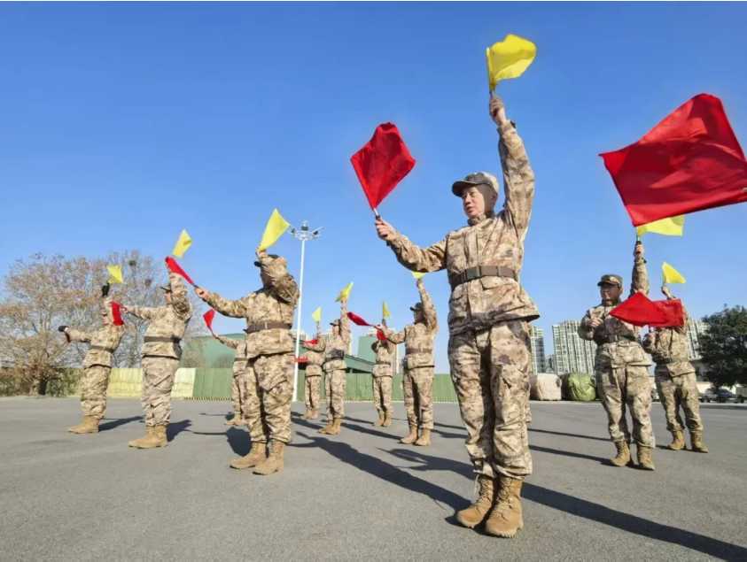 实战实训 精武强能 河南省郑州警备区砺寒练兵锻硬功 ■作者 马 昕 为立起练兵备战鲜明导向,提升遂行任务能力,近日,河南省郑州警备区紧扣实战需求,多措并举组织所属官兵开展冬季实战化训练。他们邀请大疆公司专业人员现场演示讲解FC100无人机性能,为低空运输、应急救援、工程建设等任务开展筑牢技术支撑;同步组织心理行为训练,通过针对性科目设置,锤炼参训人员心理素质,强化团队协作精神;分组进行电台操作、旗语识别、轻武器分解结合等实操训练。通过系列训练,进一步夯实官兵履职基础,提升队伍实战化水平和协同作战能力。 |