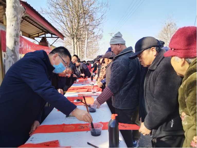 红纸翻飞,墨香袅袅。2月2日上午,郏县长桥镇坡河村村委会门口暖意融融,一场充满传统文化韵味的迎新春活动在此展开。平顶山市文学书画院(平顶山文艺志愿者服务中心)联合郏县文学艺术界联合会,组织书法家走进乡村,开展“百花迎春乐中原”义写春联活动,为当地村民送上手写的祝福与温暖。 清晨的寒意尚未完全散去,坡河村村委会院内已是一派忙碌景象。长桌整齐排开,鲜艳的红纸、浓郁的墨汁、各式毛笔准备就绪。书法家们一到现场便铺纸提笔,顷刻间,院内墨香四溢。 “和顺一门有百福,平安二字值千金”“春归大地人间暖,福降神州喜临门”……书法家们挥毫自如,楷书工整端庄,行书流畅生动,草书潇洒奔放。每一笔都凝聚着功力,每一划都传递着情意。不一会儿,地面上、桌案旁便铺满了一幅幅墨迹未干、寓意吉祥的春联和一个个饱满有力的“福”字。 闻讯赶来的村民渐渐围拢在书写桌旁,有人仔细端详书法家运笔,有人轻声念出对联上的句子,更多人在已经写好的作品前精心挑选。 “还是手写的春联有味道!”村民李大爷拿着刚选好的一副春联,笑容满面地说,“买的印刷品虽然精致,但总感觉少了点人情味和温度。书法家现场写的,墨香闻得见,心意感觉得到。” 不少村民还特意请书法家根据自家情况创作个性化内容。家中有孩子高考的求一副“金榜题名”,刚盖新房的请写“乔迁之喜”,经营小店的则青睐“生意兴隆”。书法家们有求必应,虽值冬日,却不顾手冷,坚持为每一位村民认真书写。 “春联不只是节日的装饰,更是中华传统文化的重要载体。”平顶山市文学书画院院长禹文坡表示,“作为文艺工作者,能深入乡村,用笔墨为乡亲们送去祝福,既是一种服务,也是一种学习。看到村民们拿到春联时高兴的样子,我们心里也暖洋洋的。” 郏县文联党组书记程险峰在现场介绍说,此类文化下乡活动我们已连续开展多年,旨在以群众喜闻乐见的形式,弘扬优秀传统文化,丰富农村精神文化生活,营造文明、和谐、喜庆的节日氛围。 红彤彤的春联映照着村民喜悦的脸庞,浓浓的墨香掺和着渐浓的年味,在坡河村弥漫开来。这场义写春联活动,书写的不仅是吉祥话语,更是文艺工作者深入生活、扎根人民的真挚情怀,是传统文化在当代乡村生动传承的温暖缩影。 据悉,此次活动共为村民书写赠送春联、“福”字三百余幅,在春节前夕为坡河村增添了一道独具人文气息的节日风景。(李增强) |