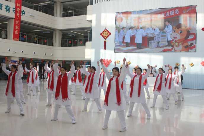 活动一开始,白衣天使们就带来了活力满满的暖场舞《祝您新年快乐》、八段锦表演,用青春的舞步、传统的中医健身功,点燃现场气氛。