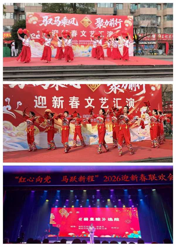 文艺汇演聚人心,欢声笑语庆新春。街道各社区精心筹备的迎新春文艺汇演,形式多样、内容鲜活、贴近民心。演员们身着盛装、倾情演绎,灵动的舞姿舒展美好向往,悠扬的歌声传递新春祝福,生动展现了辖区居民昂扬向上、积极奋进的精神风貌,也寄托着大家对新一年的美好期许。台上热情洋溢、精彩纷呈,台下掌声雷动、暖意融融,老人孩童围坐畅谈、笑意盈盈,欢声笑语间,年味儿愈发醇厚绵长。一场场文艺盛宴,不仅丰富了居民的精神文化生活,更搭建起邻里相聚、情感交融的桥梁,成为凝聚邻里情谊、共庆团圆佳节的重要纽带。