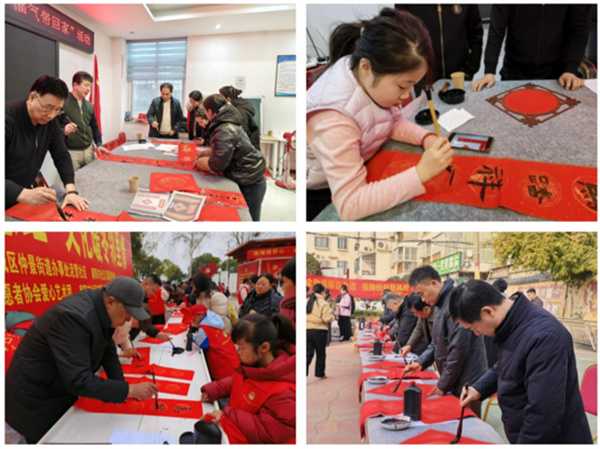 翰墨飘香润民心,民俗传承添年味。为让居民在笔墨书香中感受传统年俗魅力,传承中华优秀传统文化,街道各社区特意邀请书法协会书法家,开展写春联、送祝福志愿服务活动。活动现场墨香氤氲,红底金边的宣纸整齐排布,书法家们凝神挥毫、笔走龙蛇,一幅幅笔力遒劲、寓意吉祥的春联跃然纸上,既承载着新春的美好祝福,更传递着文明向善、邻里互助的新风尚。辖区各年龄段居民踊跃参与,或驻足观赏或提笔体验,孩子们临摹练字,老人们悉心指导,邻里间相互交流、彼此喝彩,在笔墨流转中传承中华优秀传统文化,让邻里温情在互动中悄然传递,真正实现了以文润心、以文化人。