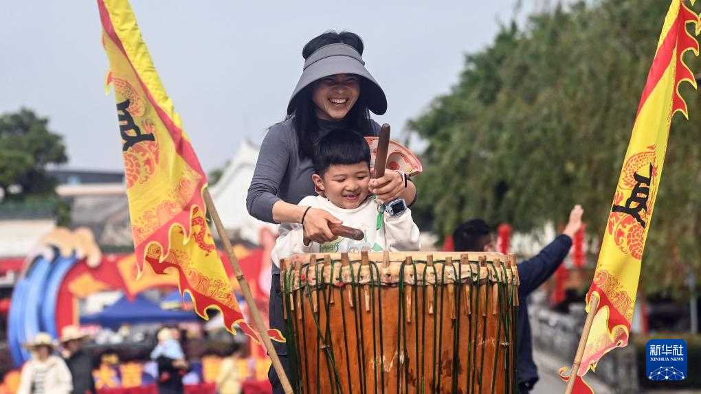 广西钦州:看戏击鼓 体验传统文化