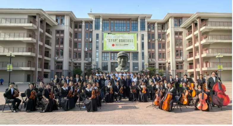 2026年4月24日,春阳斜照,绿意盈阶。郑州市第七高级中学雷锋广场上,一场以“花开有声·声生不息”为主题的校园小型音乐会,在师生的翘首期待中如约绽放。 作为学校“感春”系列文化活动的重要一环,本次音乐会由校交响乐团与合唱社团联袂呈现,以艺术为媒,以音律为言,在春日校园中勾勒出一幅声景交融的博雅画卷。 本次活动由党委书记王保军、校长黄玉杰策划指导,副校长刘宁担任导演,凝聚了多位教师与学生的协同筹备。音乐会不仅展现了七中学子的艺术才华,更呼应了学校“美育浸润”的育人理念。舞台之上,学子们眸中有光、声中有情;舞台之下,师生共赏、心弦共振。这场春日里的音乐邂逅,正是七中“博雅教育”生动实践的缩影——在经典与现代的对话中陶冶性情,在个体与集体的共鸣中涵养品格。 午后4点10分,雷锋广场沐浴在融融春光中。音符随暖风流淌,《敕勒歌》的苍茫辽阔、《喜欢》的青春悸动、《一路生花》的明媚向往、《如愿》的深情祈盼,在交响乐的恢弘与合唱的清澈中层层铺展。 学生们利用大课间驻足聆听,时而静默沉浸,时而掌声轻起。音乐会在《如愿》的悠长余韵中缓缓落幕,而“声生不息”的寓意却持续回响。这场短暂而精彩的音乐会,如同一枚春日的音符,落在时间谱线上,却漾开无尽的回响。 本次音乐会中,《喜欢》《一路生花》《如愿》三首乐团伴奏的曲目,均由郑州七中往届优秀校友焦子筝量身改编。她凭借扎实的专业素养,为作品赋予全新层次,以初心反哺母校美育建设,尽显七中艺术文脉的温暖传承。 音乐如春风化雨,浸润着校园的每一个角落,也映照出学校“以美育人、以文化人”的博雅追求。在七中,教育不仅是知识的传递,更是生命的唤醒与文化的滋养。当音乐与春天相遇,当学子与艺术相拥,一所学校的博雅气象,便在这花开有声的时节里,生生不息,韶华长存。(大志 仪嘉) |